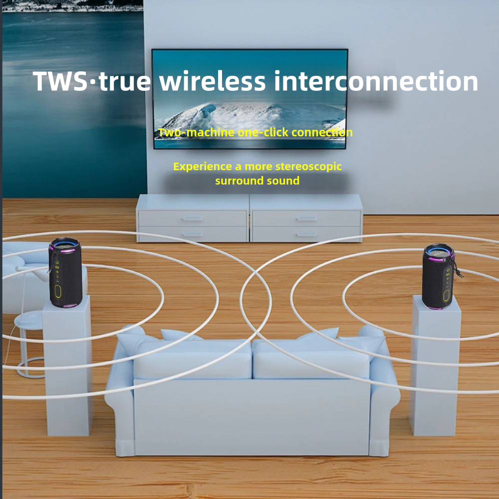 휴대용 무선 스피커 야외용 스피커, 딥 베이스 RGB 조명, 듀얼 페어링, 홈 파티용